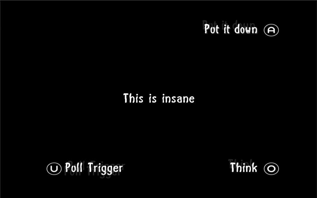 I was expecting a pretentious game about suicide. What I got was a simplified version of Heavy Rain with Russian roulette. My feelings can best be described by the following video, which I may remake to be titled "Press O to Think"